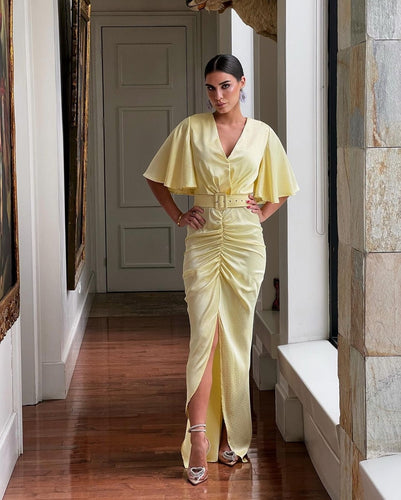 Ariel Soft Brown Silk Midi Dress