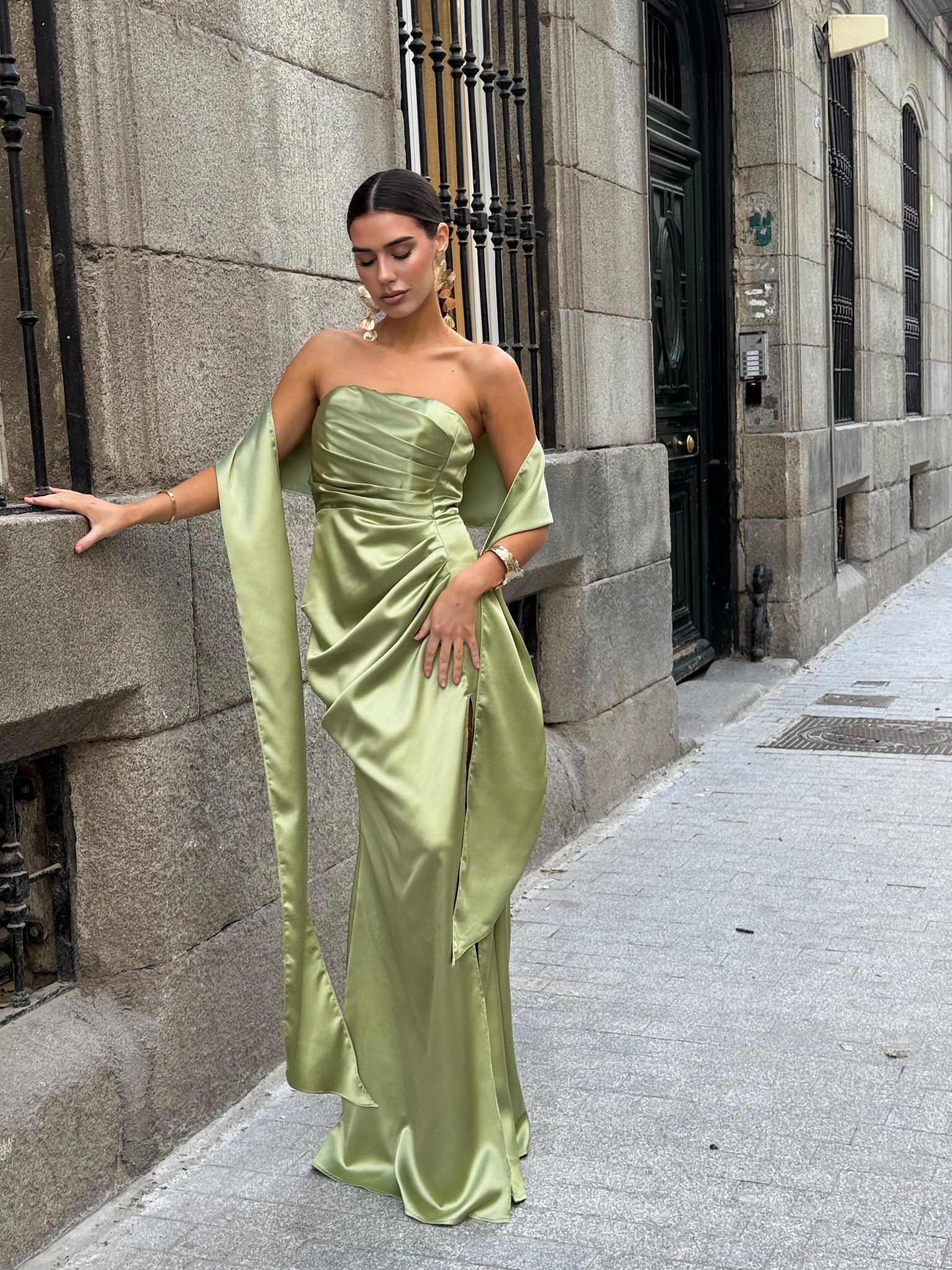 Olive satin dress